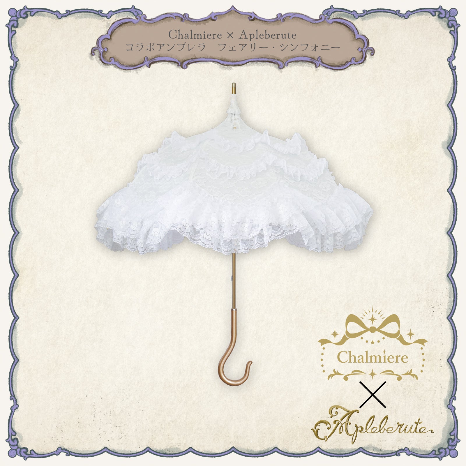 Chalmiere×Apleberuteコラボパラソル フェアリー・シンフォニー - パゴダ 日傘 UVカット ショート丈 フリル レース