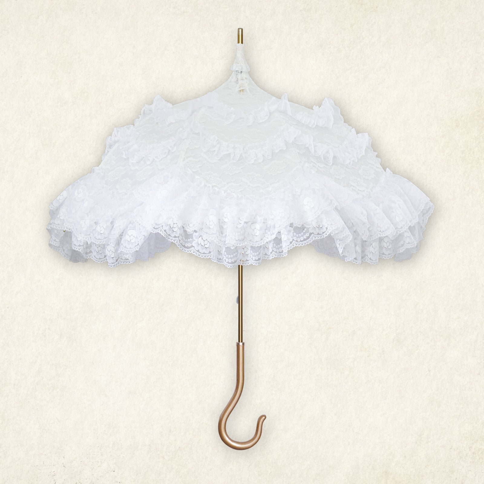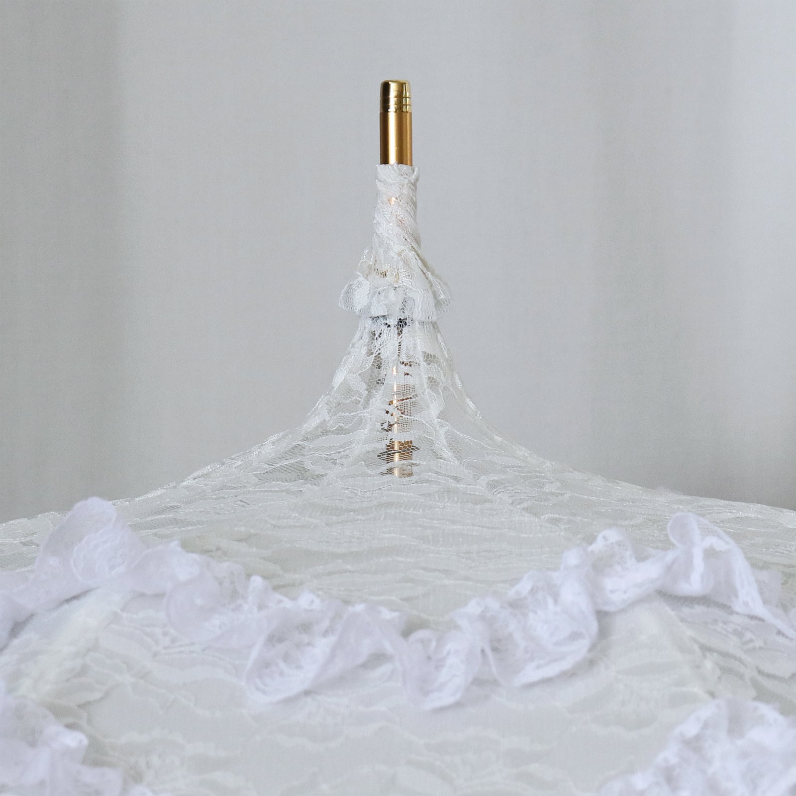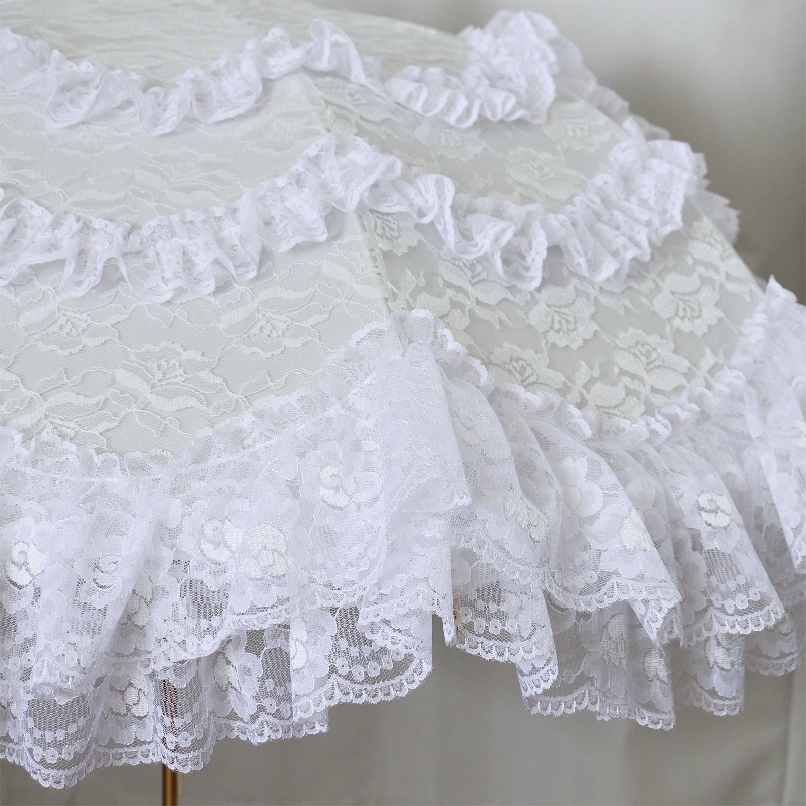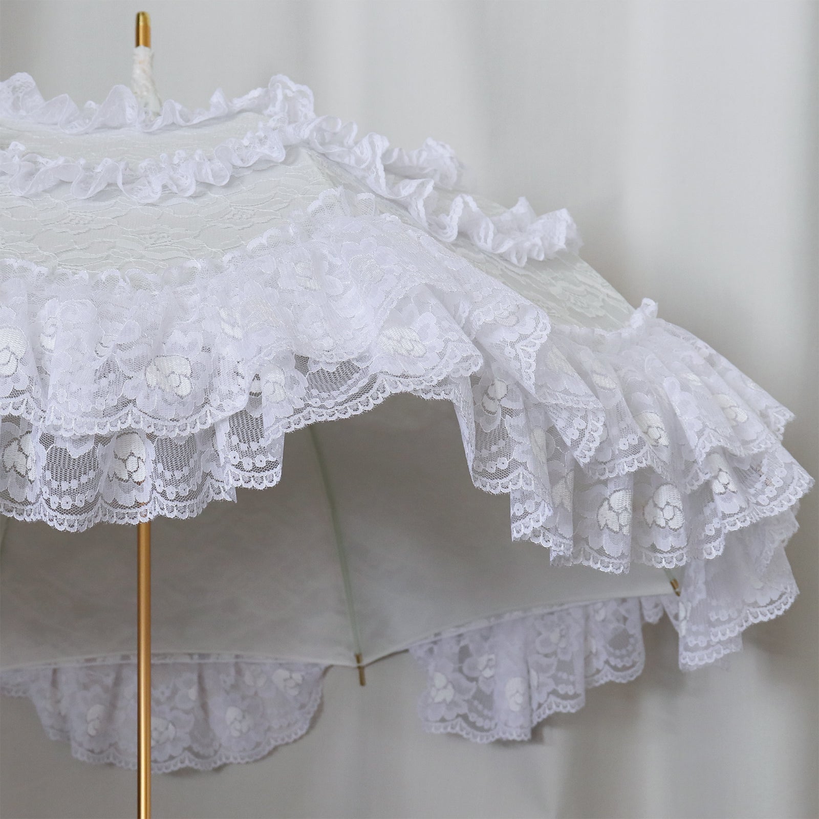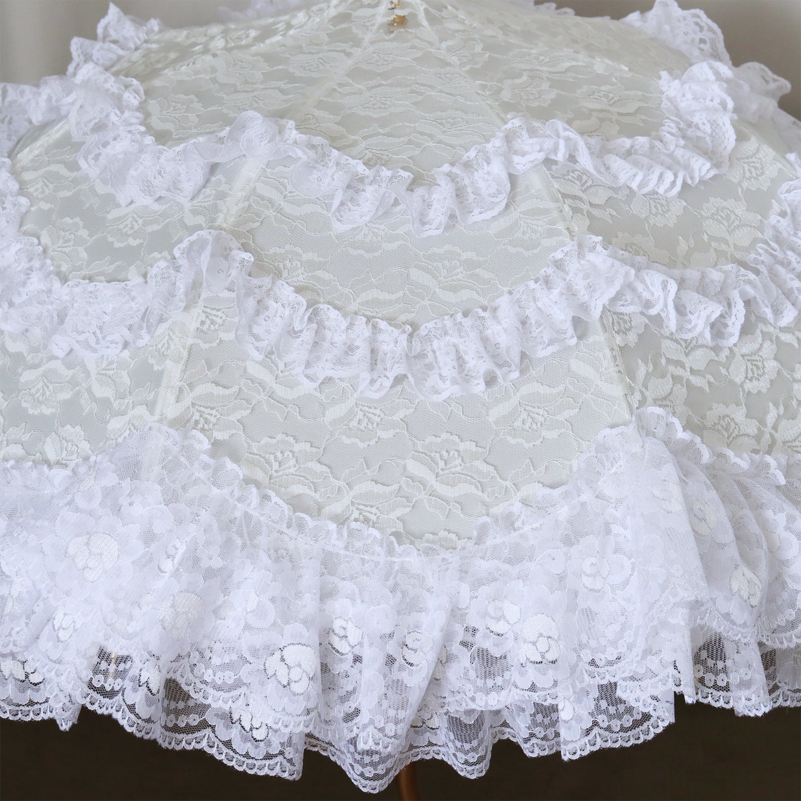 繊細なレースを贅沢に重ね、幾重にも広がるフリルが優雅で華やかな印象を演出します。