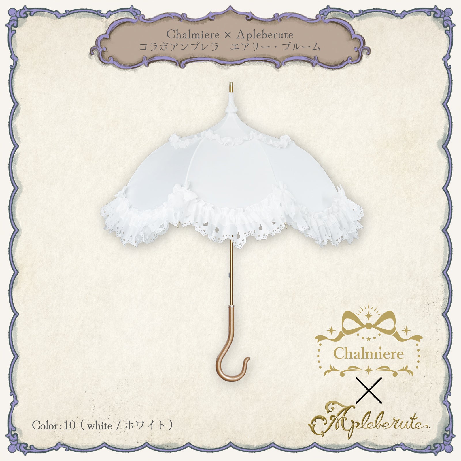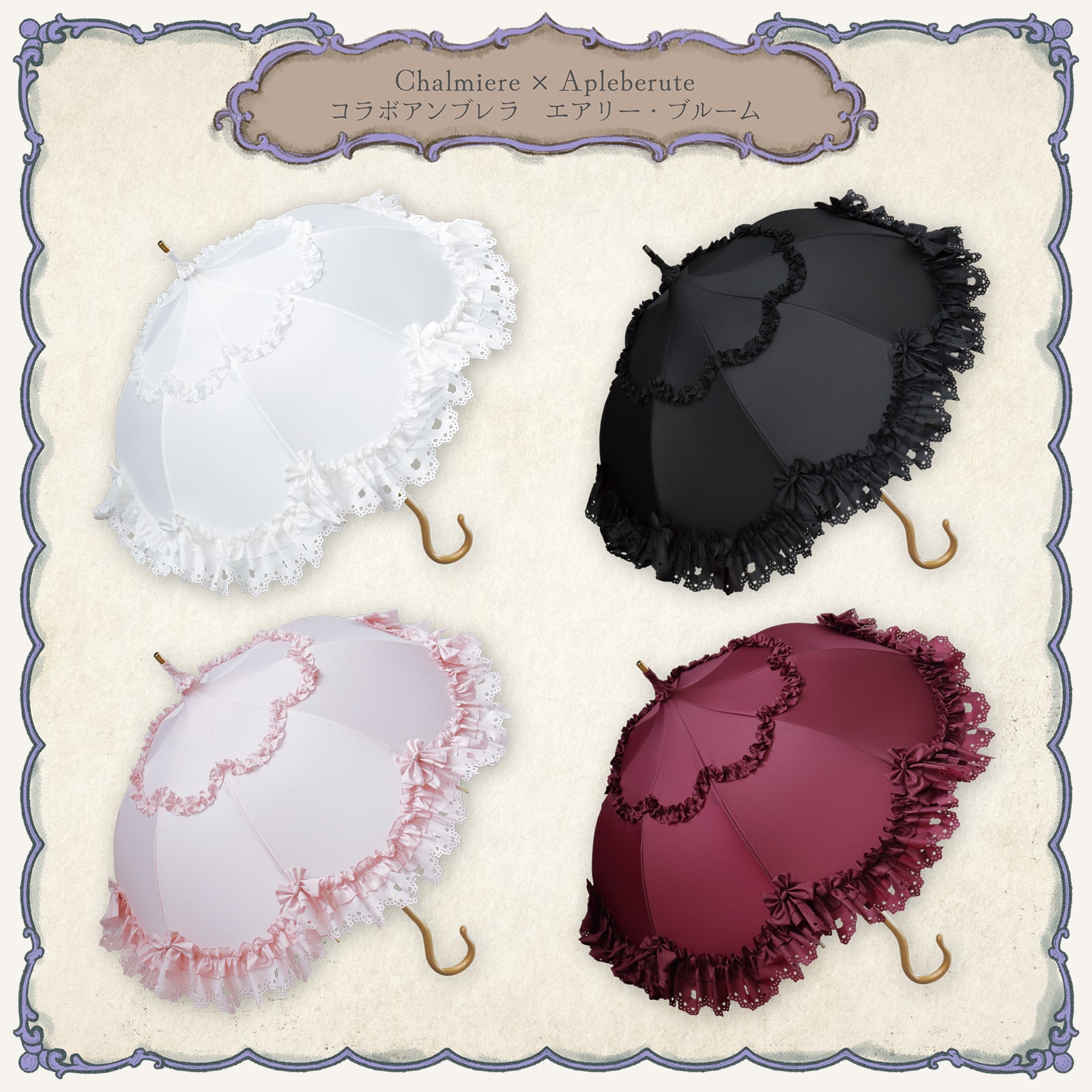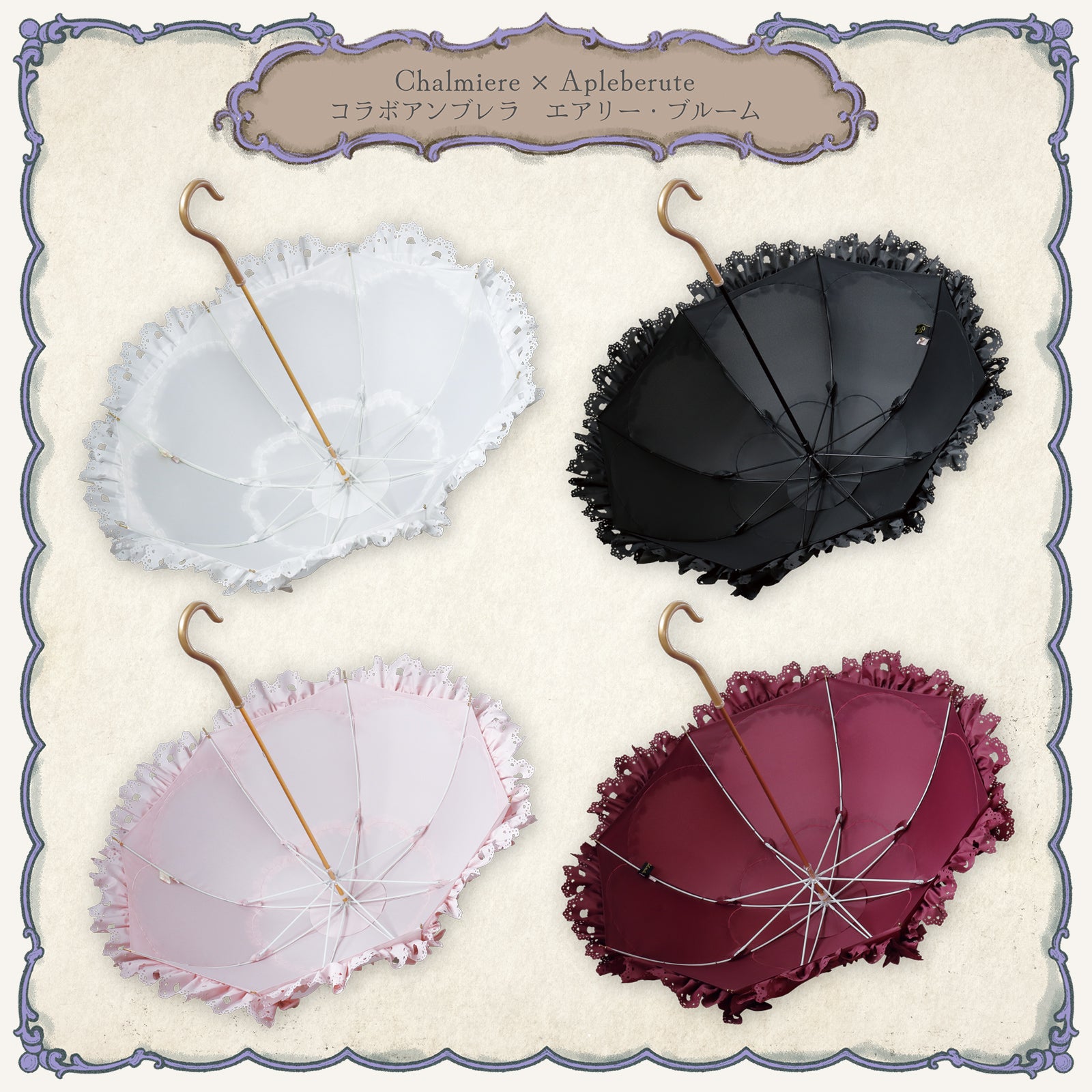 Chalmiere×Apleberuteコラボアンブレラ エアリー・ブルーム - パゴダ 雨傘 UVカット 長傘 フリル
