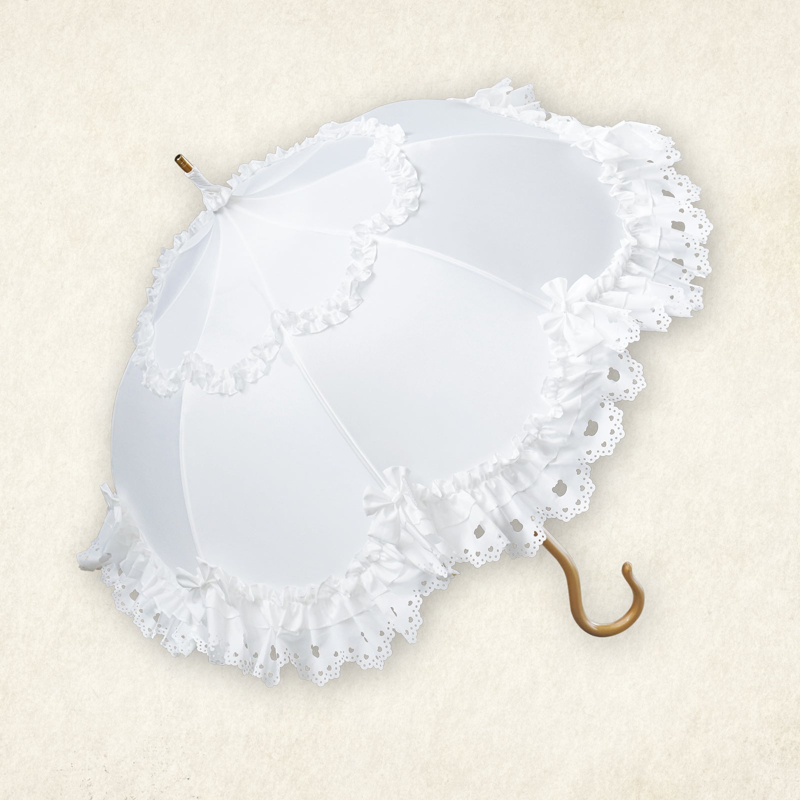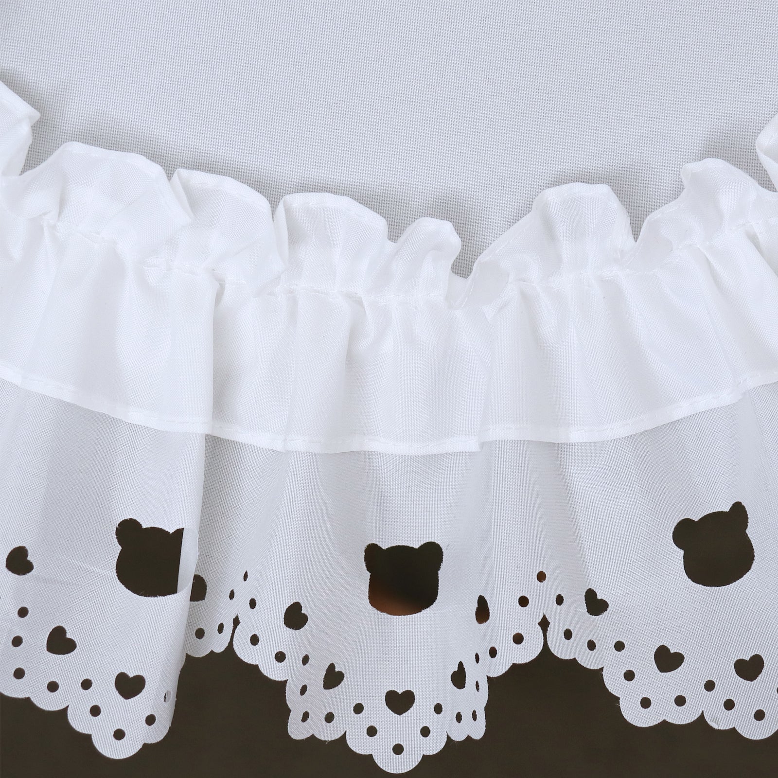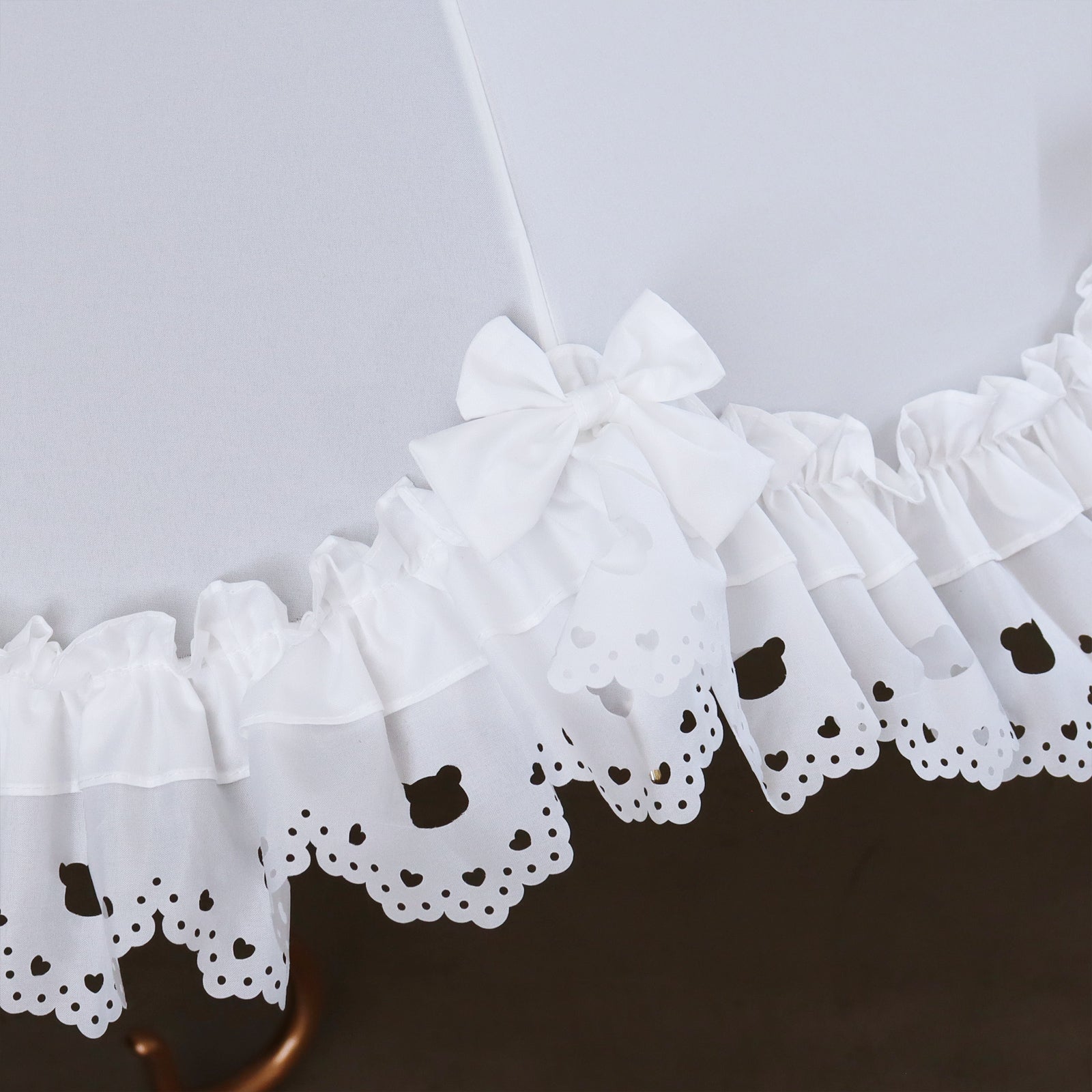 フリル部分にはヒートカット加工を施し、オリジナルの「クマ」モチーフをくりぬきで表現。
