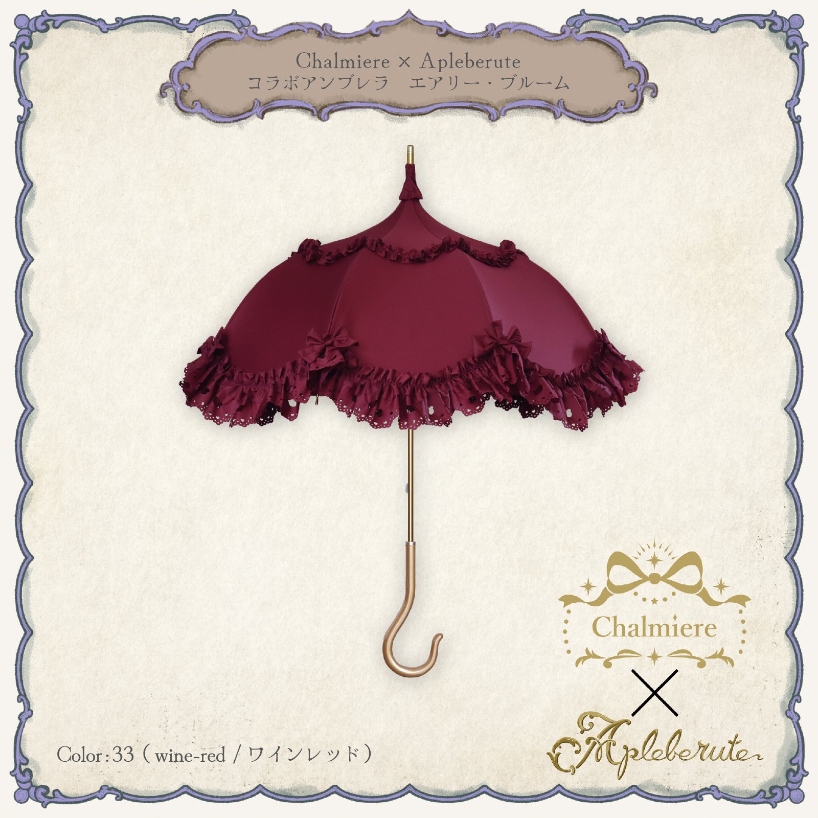 昨年ご好評をいただいたChalmiereとのコラボアンブレラに、新色ワインレッドを加えたアップデートモデル。